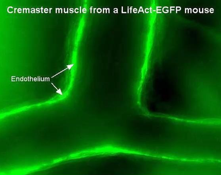 What will you see if you generate a transgenic Lifeact-GFP knock in mouse and look at e.g. the cremaster muscle from this mouse?