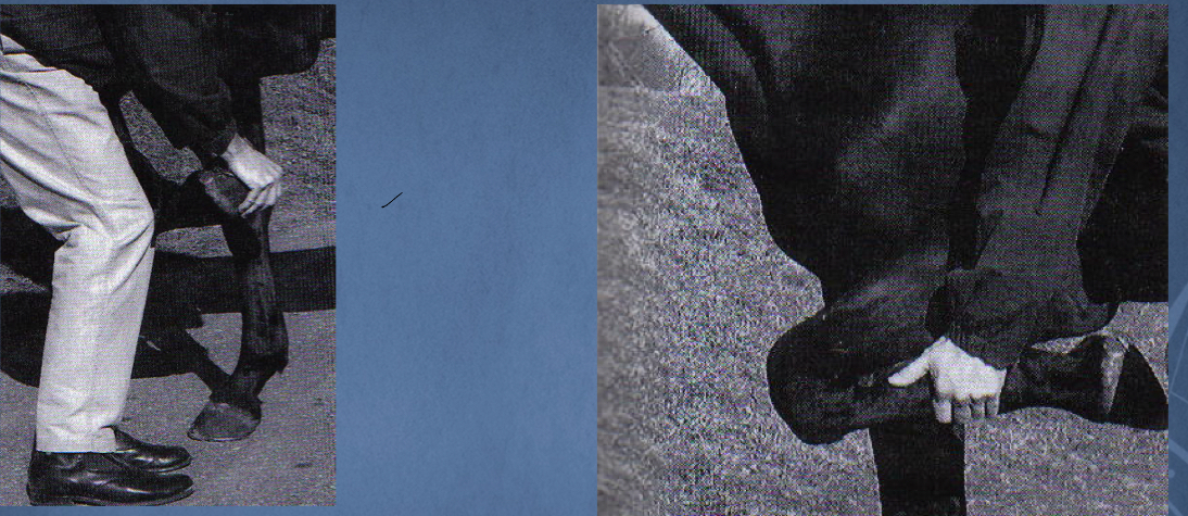 Stand frog on hoof knife handle for 30 seconds and pick up other limb