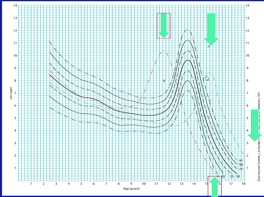 Puberty - Rapid growth primarily dependent on sex steroids and increase GH release