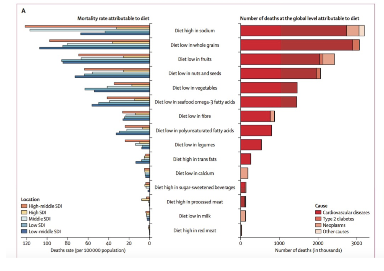 - number of deaths and age-standardised mortality rate attributable to individual dietary risks at the global and SDI level in 2017