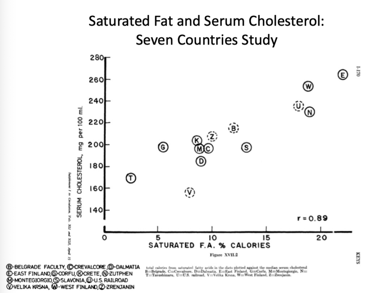 linear relationship between the proportion of saturated fat and serum cholesterol