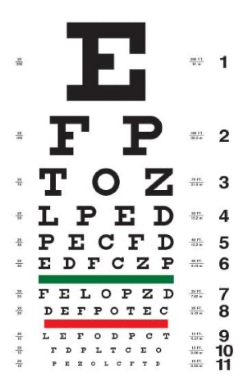 - Client can read at 20 feet what the normal eye can see from 40 feet away