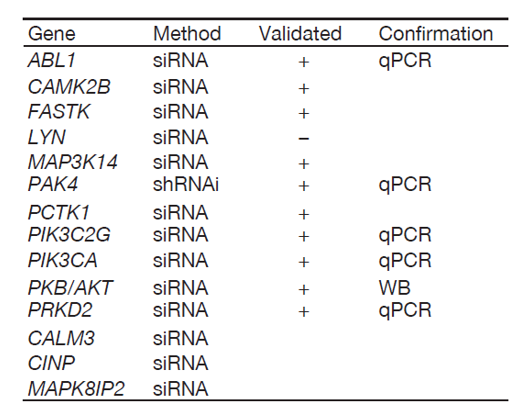 After it was found that Rab7 was needed for late endosome acidification, researchers were interested in which other kinases would reduce growth of Salmonella. They first knocked-down all sorts of kinases to find kinases that would reduce S. growth (see picture). After this they used chemical inhibitors to inhibit these kinases. They found only one kinase where inhibition of the kinase lead to reduced growth. What kinase was this and is it actually a potential drug target?