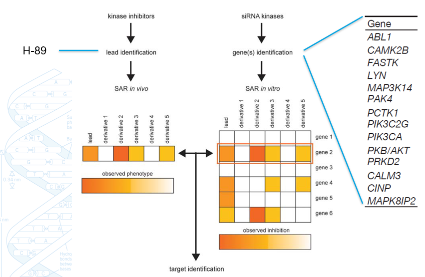 So with only few results, scientists took their interest in PKA inhibitor H-89. They wanted to see what kinases could be inhibited by H-89. For this they used structure-activity relationship (SAR). How was SAR used to identify kinases that were inhibited by H-89?