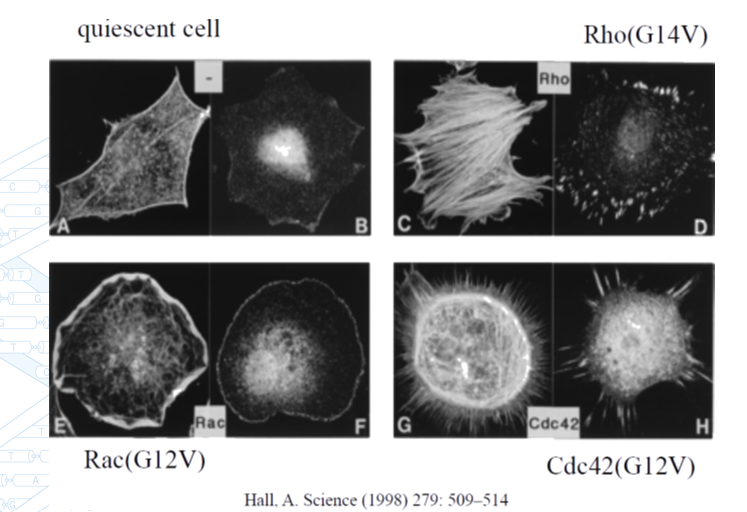 You can see that these proteins do something to the cytoskeleton of cells. You can conclude that these GTPases regulate actin.