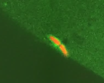 Here, in red Salmonella is visualized and in green GFP-Rab14. What can we conclude based on this picture?