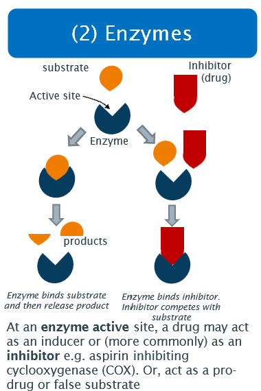 e.g. Inhibitor: aspirin inhibiting cyclooxygenase (COX)