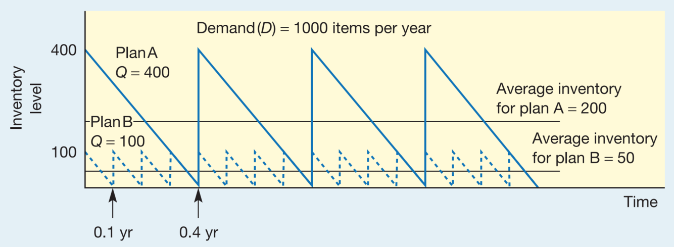 Ordering frequently,we suffer a large fixed cost of ordering.