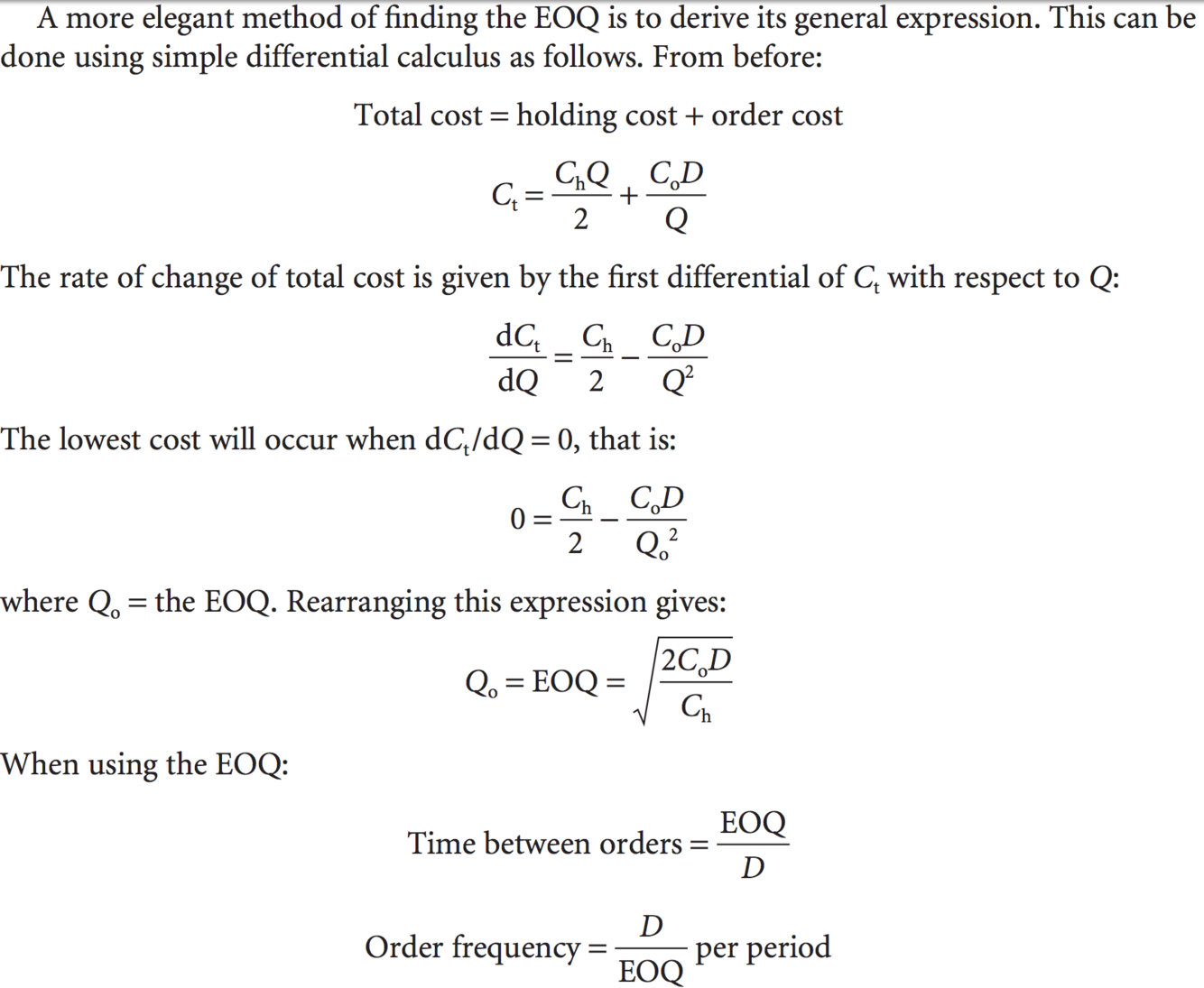 Explain the point of EOQ formula, by illustrating two re-order different approaches to re-ordering stock. (This is all under a fixed quantity order model)