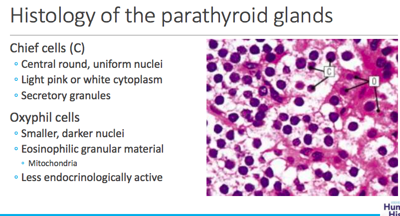 What are the 3 histological characteristics of the Chief Cells of the parathyroid glands?