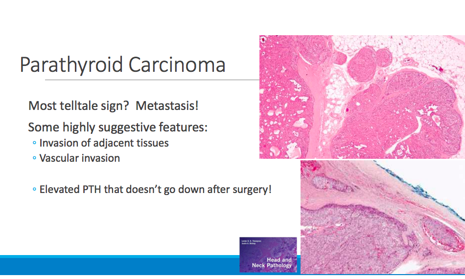 What are the only reliable criteria for diagnosis of a parathyroid carcinoma?
