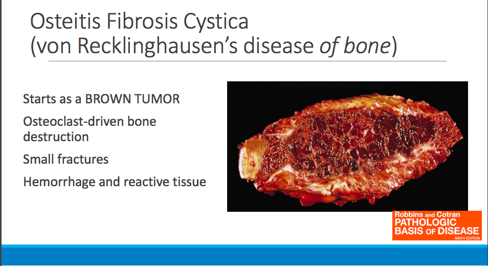 What are the 3 hallmarks of severe hyperparathyroidism and is known as generalized osteitis fibrosa cystica (von Recklinghausen disease of bone)?