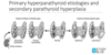 What are 3 causes of primary hyperparathyroidism; which is most common?