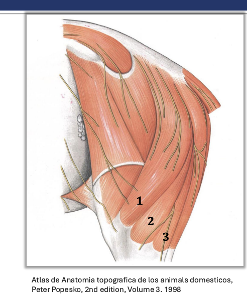 ▪ Semimembranosus (3): caudal-most
