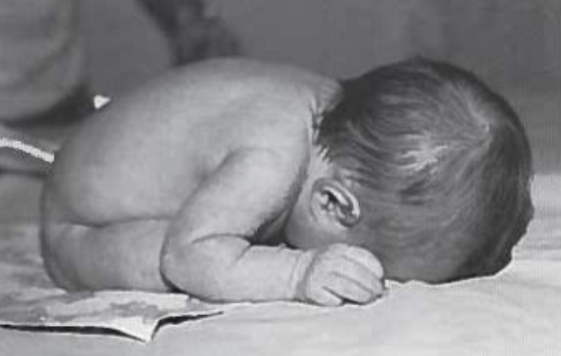 NOTE: in prone weight is on their forward at birth, however, at 1 month that weight moves to their cheek