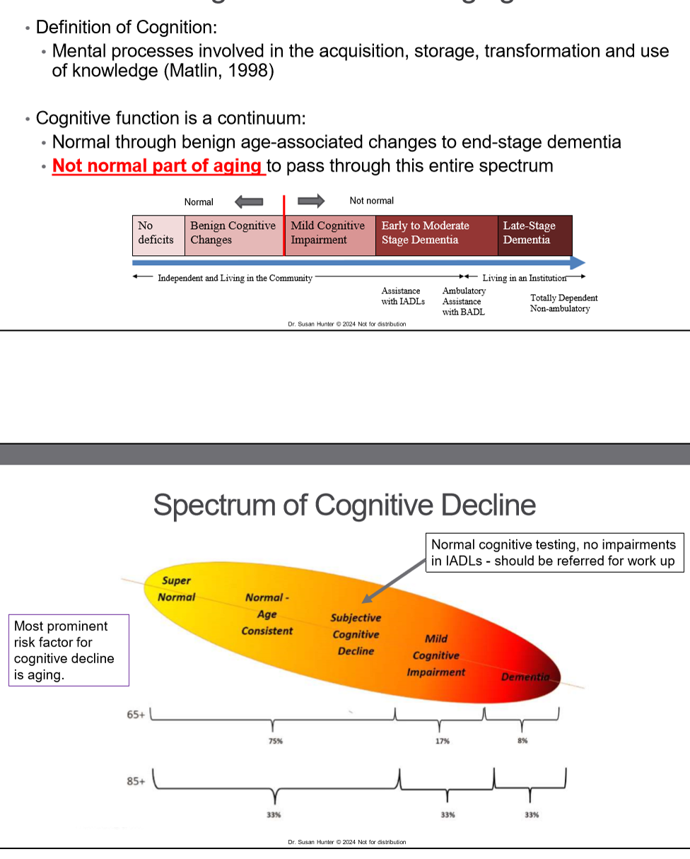 Describe dementias impact on cognitive function