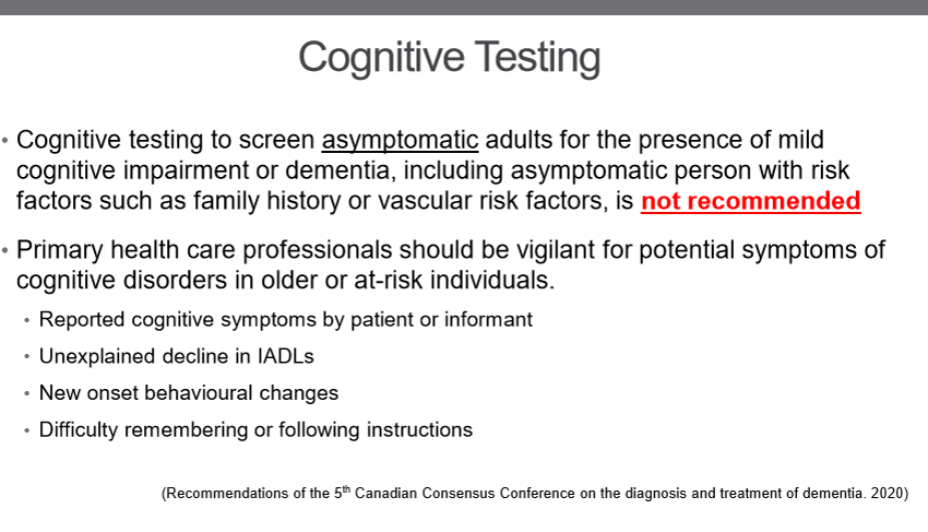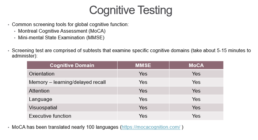 What are common cognitive tests used