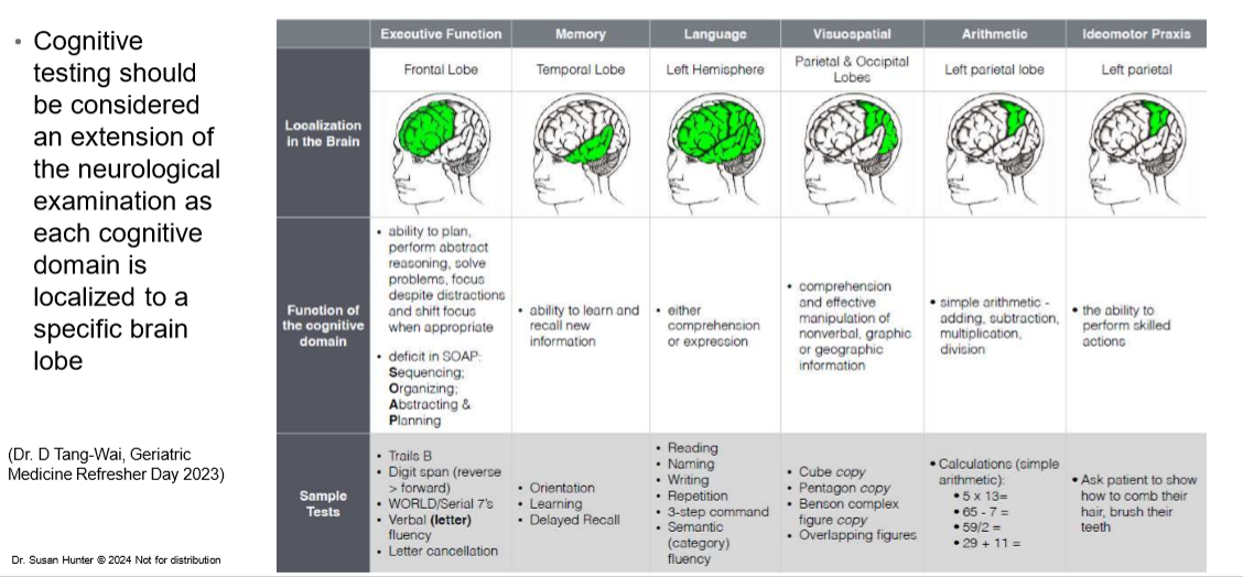 Describe cognitive testing and its purpose