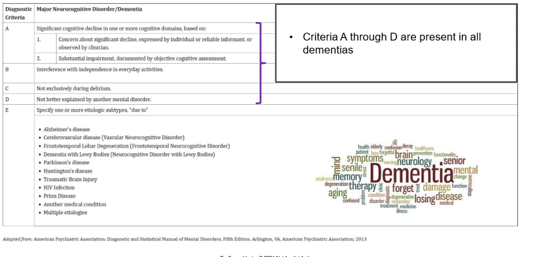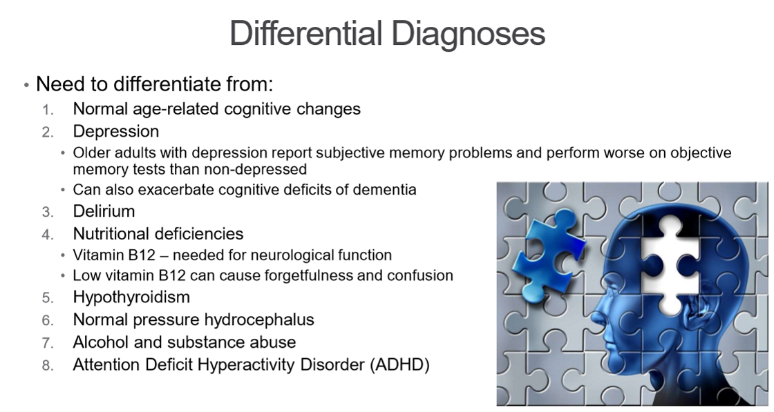 What are some differential diagnoses to dementia
