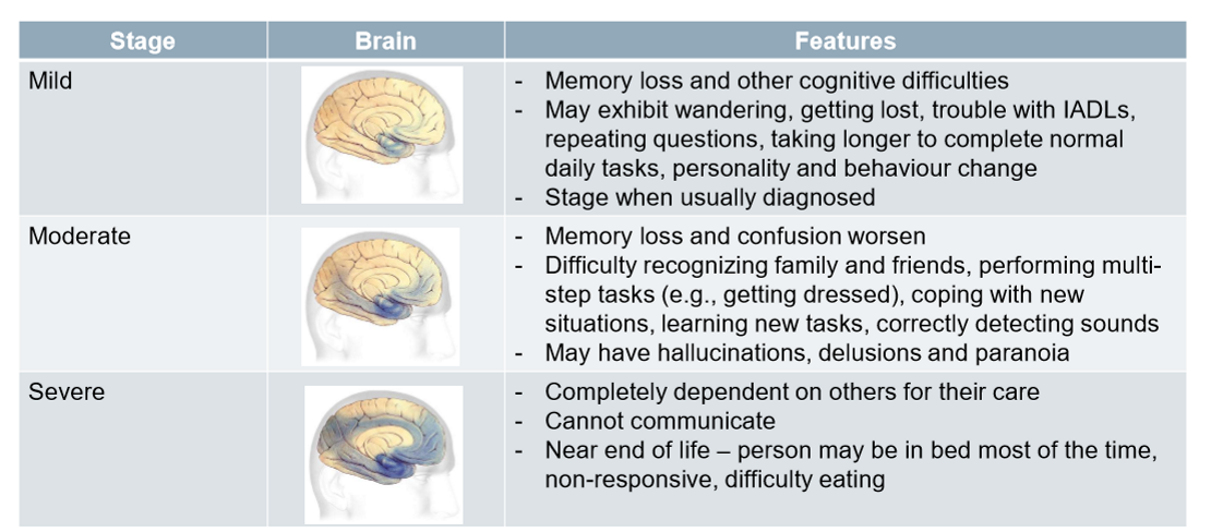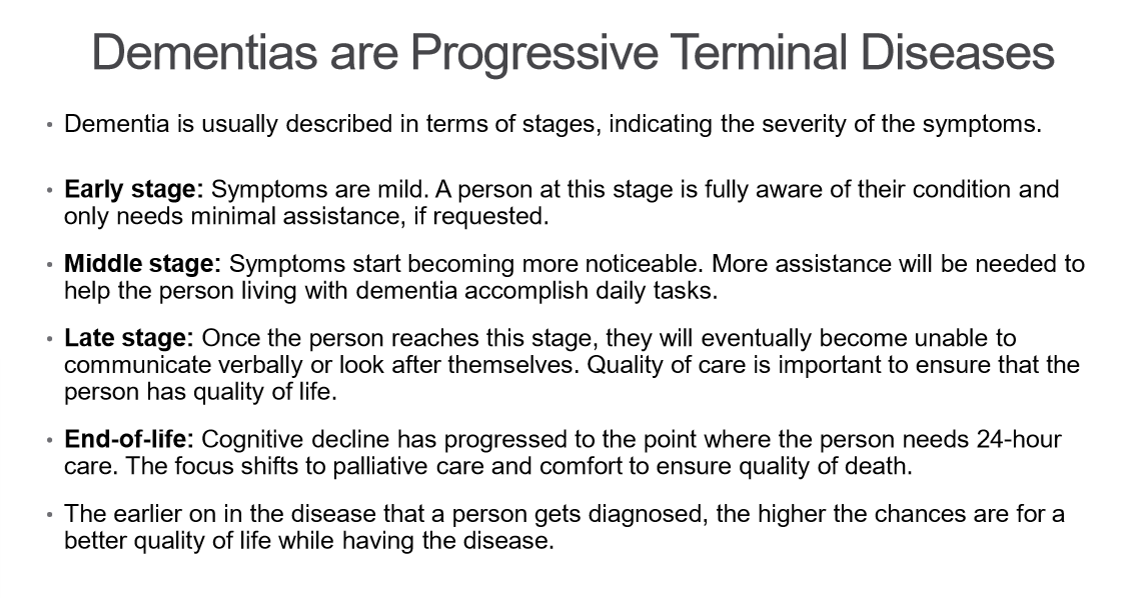 Describe the progression of dementia