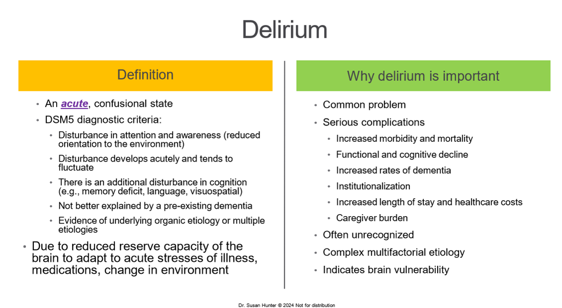 Describe delirium and why it is important