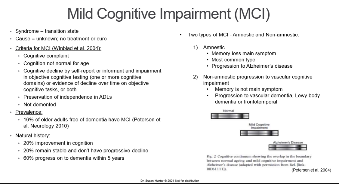 Describe mild cognitive impairment dementia, its prevalence, and its 2 types