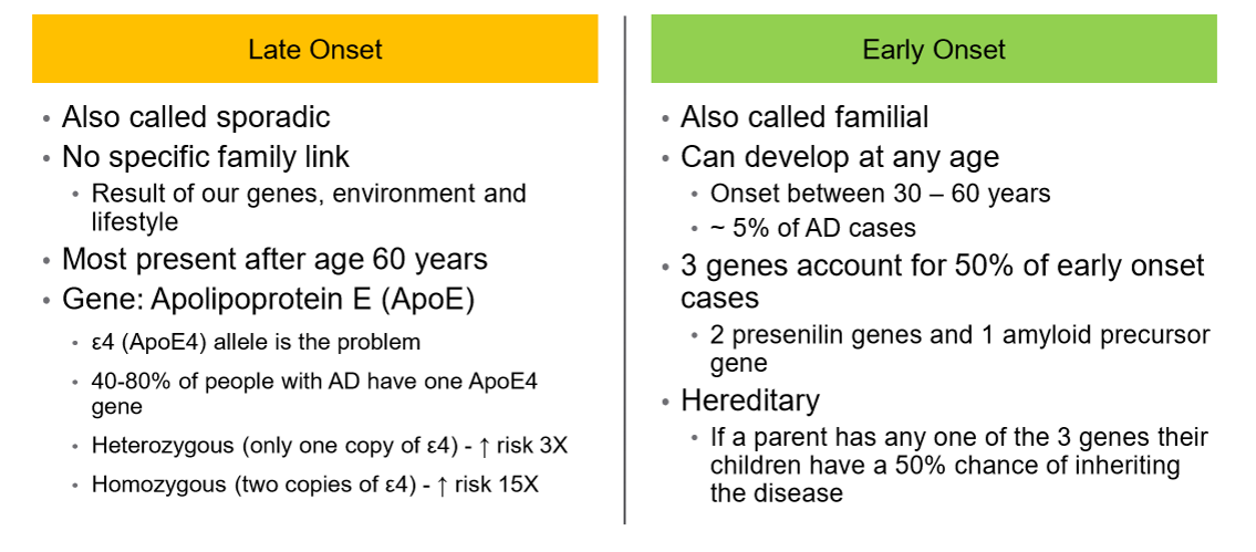 Compare late vs early onset Alzheimer’s disease