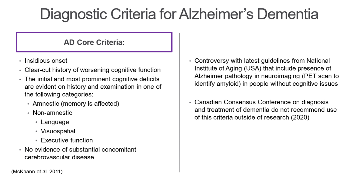 What is the diagnostic criteria for Alzheimer’s disease