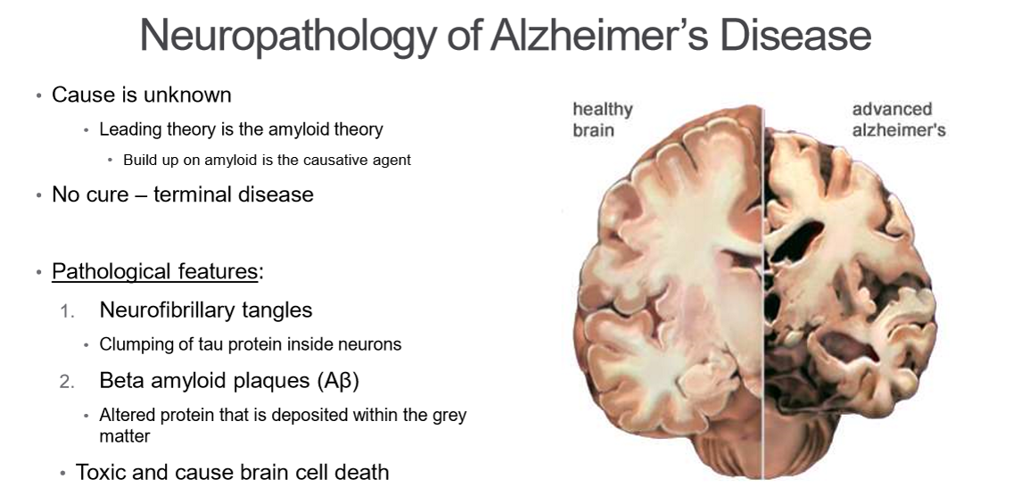 What are the pathological features of Alzheimer’s disease