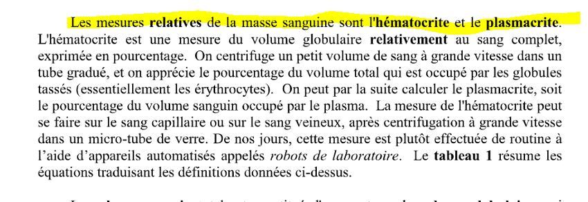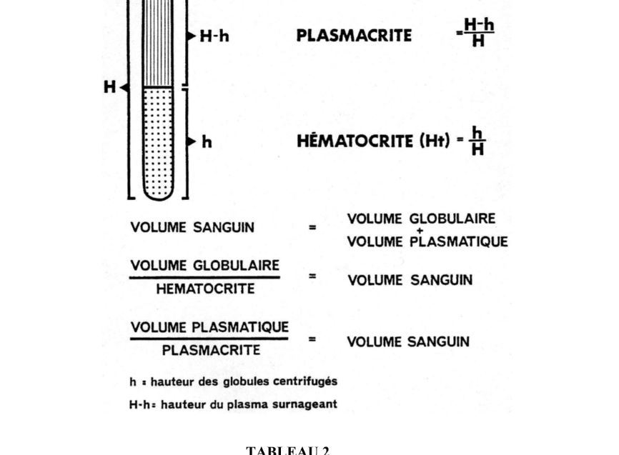 le VOLUME GLOBULAIRE RELATIVEMENT au SANG COMPLET , en %