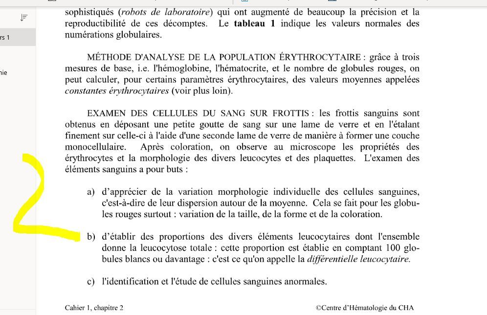 permet d’établir la différentielle leucocytaire