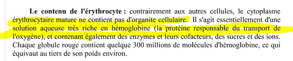 V/f le cytoplasme des Érythrocytes est une substance aqueuse avec pas grand chose dedans