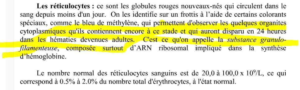 comment appelle-t-on les quelques organites cytoplasmique des réticulocytes