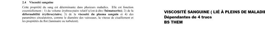 v/f , une variation de l’hématocrite fait varier la viscosité sanguine