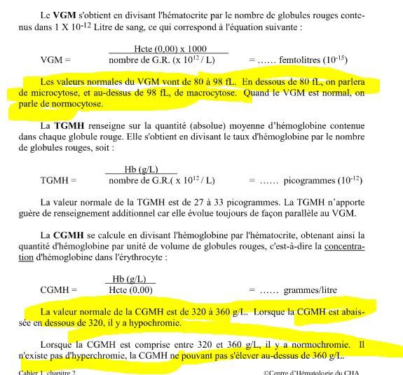 Selon les 3 constantes érthrocytaire