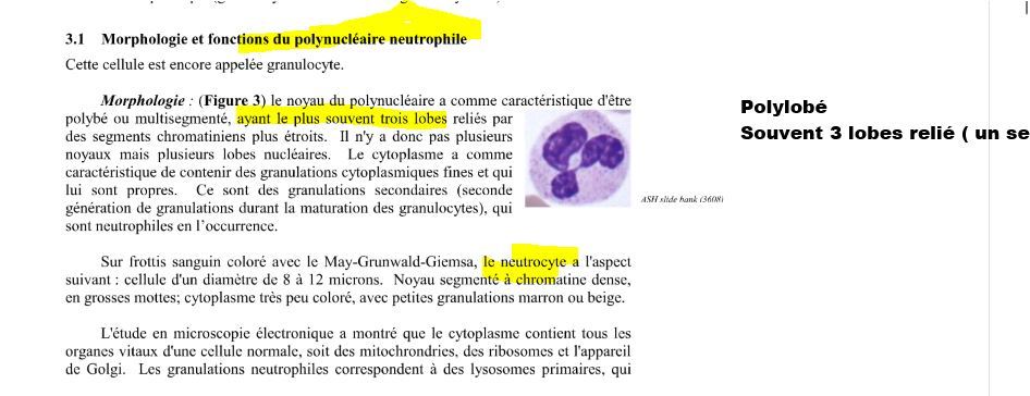 cv/f habituellement le neutrophile contient 2-3 noyaux