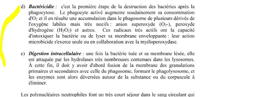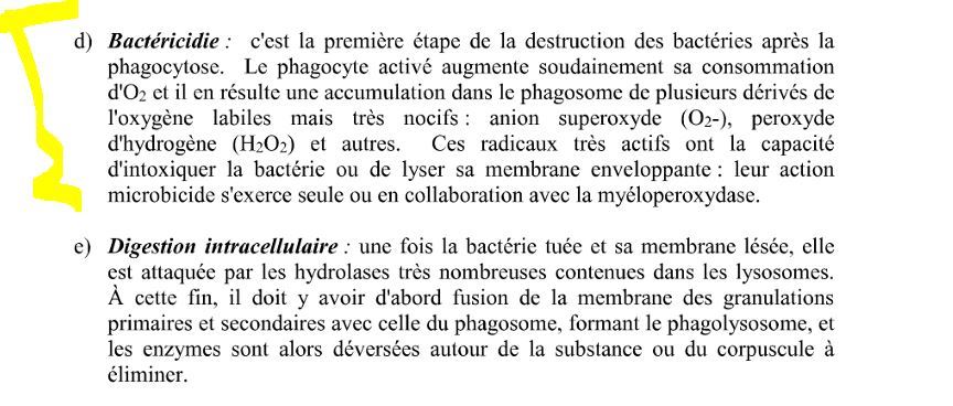 première étape de la destruction des bactéries après la phagocytose —) ?