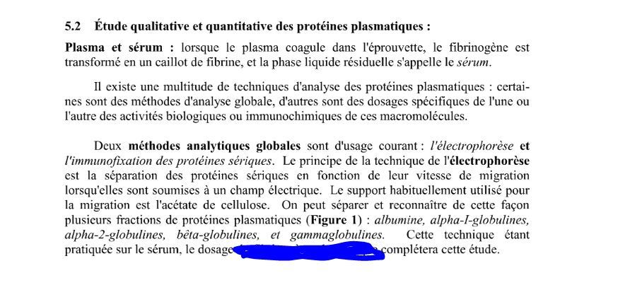 << Je sépare les protéines sériques sériques en fonction de leur vitesse de migration lorsqu’elle sont soumises à un champs électrique , avec de l’acétate de cellulose>> - Victor Hugo
