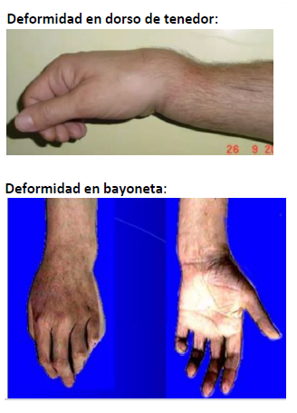 Deformidad en dorso (tenedor): Puteau Colles