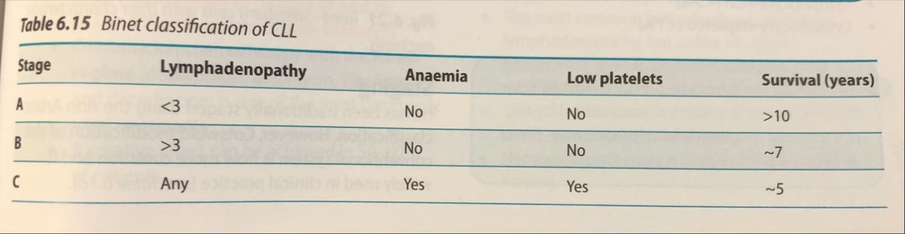 For chronic lymphocytic leukaemia, discuss: