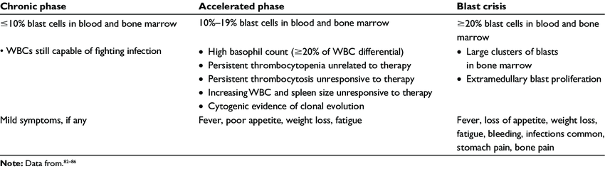 Chronic myeloid leukaemia: prognosis worsens as you go from chornic to accelerated to blast phase. However, now considered potentially curable with TKIs