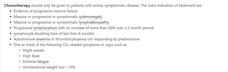 What are indications for treatment in CLL?