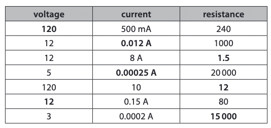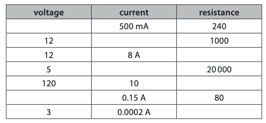 A 12 V circuit with a 4 ohm resistor will have a current of 6 A.