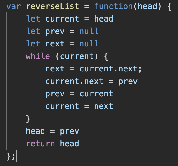 Create 3 variables, current (which starts off at head), and the pointers prev and next (which are both null to start).