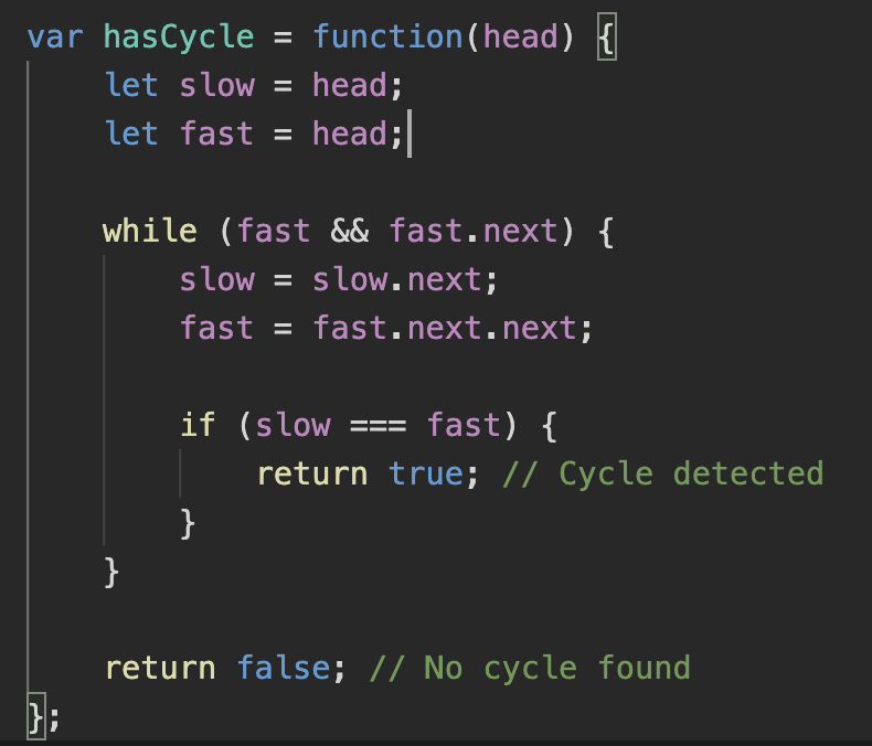 have two pointers going at different speeds. If there’s a cycle, eventually they will land on the same node