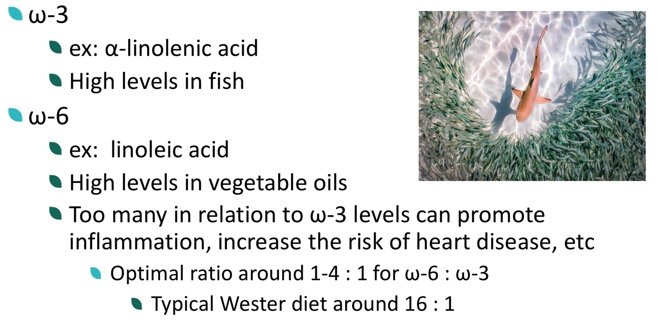 Some are essential, only get them from diet desaturase enzymes are only found in plants.