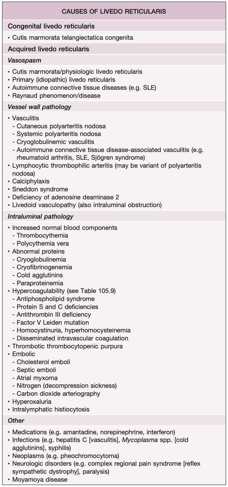 Étiologies livedo reticularis (20+)