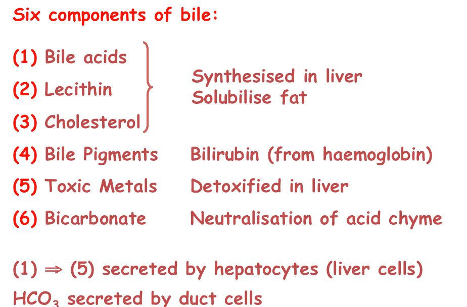 What are the components of bile?