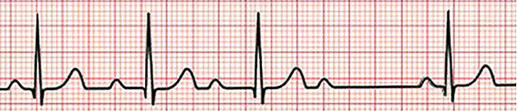 Asymptomatic ventricular premature beats (VPBs) and nonsustained ventricular tachycardia (NSVT) are not uncommon following myocardial infarction (MI), with reported incidences as high as 93% and 7%, respectively. These arrhythmias are thought to arise from transient abnormalities of cardiac automaticity or triggered activity in the region of ischemia or infarction. Routine suppression in the absence of hemodynamic compromise does not improve overall mortality, and because treatment may be associated with numerous potential adverse effects, antiarrhythmic medications are not recommended in this setting. Maintaining serum potassium concentration above 4.0 mEq/L and serum magnesium concentration above 2 mg/dL to normal ranges per general ACC/AHA guidelines followed by expectant management is the most reasonable option in this scenario.