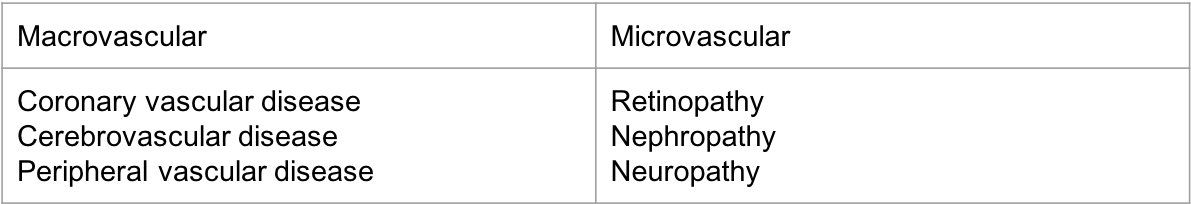 Peripheral vascular disease - Causes lower limb ischaemia, leading to ulcers and poor healing of these ulcers. Amputations are a potential outcome